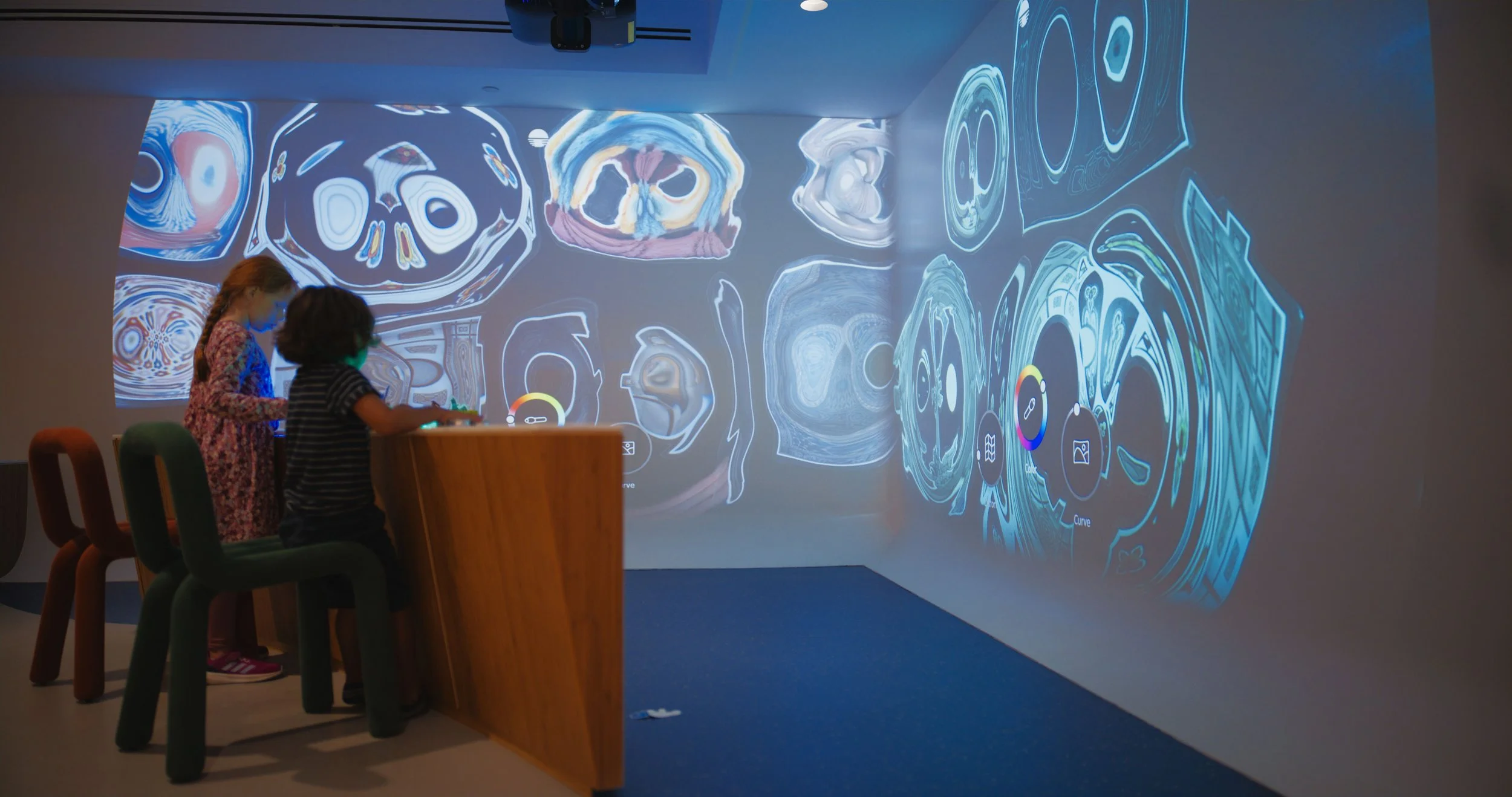 The Ramble is an immersive, multi-user visual playground where kids can experiment with light and color. As the lead developer, I built the real-time computer vision pipeline that transforms live camera input from the light table into visual effects on the projection wall. Physical knobs and buttons send sensor data to the app to control parameters such as LED light color and the intensity of the visuals, and to trigger modes including color, shadow, and distortion.